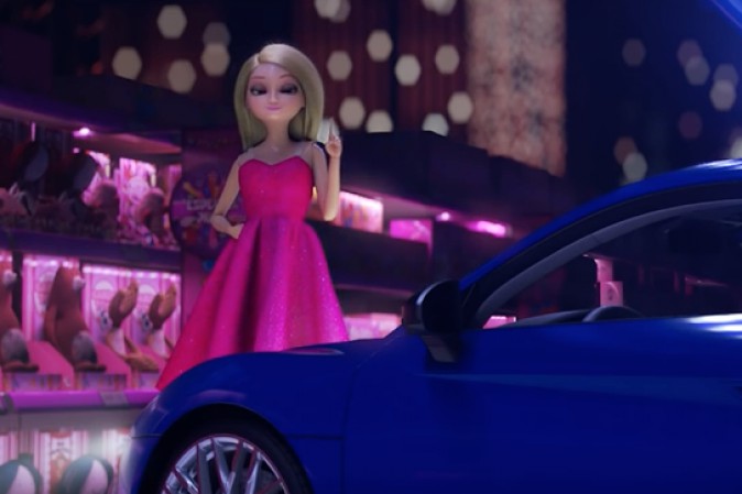 scelto una bambola che guida una macchina come protagonista dello spot,