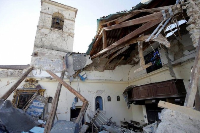 terremoto dello scorso agosto, il parroco ha mostrato ai fedeli le
